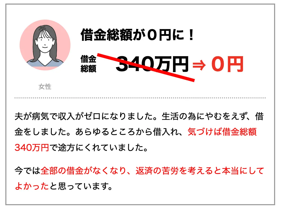 ※借金:元本と利息を合わせた金額のこと※個人の実績であり結果を保証するものではありません